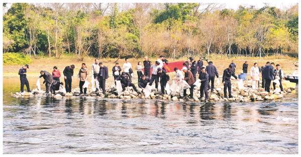 ▲15000余尾健壮鱼苗被有序投放至漓江水域。(漓管委供图)