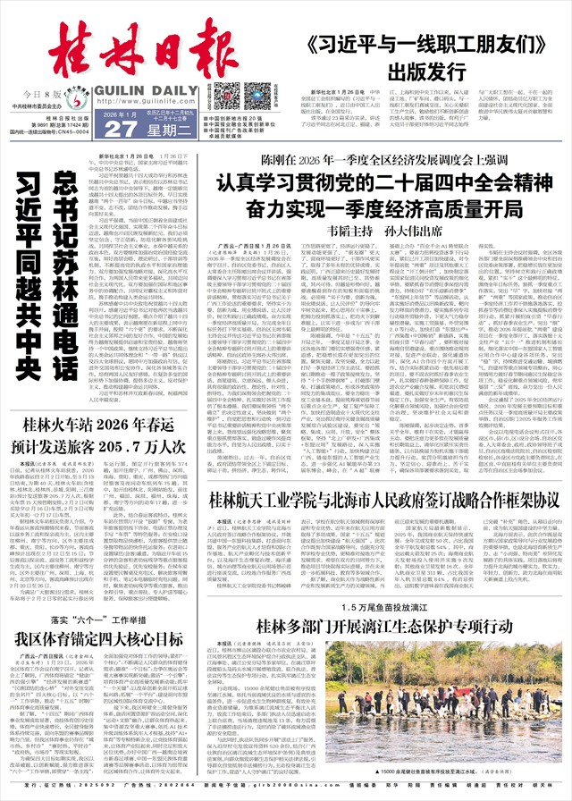 奋力实现一季度经济高质量开局 韦韬主持 孙大伟出席   广西云-广西日报1月26日讯(记者陈贻泽 龚文颖)1月26日,2026年一季度全区经济发展调度会在南宁召开。自治区党委书记、自治区人大常委会主任陈刚出席会议并讲话,强调要深入学习贯彻习近平总书记在省部级主要领导干部学习贯彻党的二十届四中全会精神专题研讨班开班式上的重要讲话精神,贯彻落实习近平总书记关于广西工作论述的重要要求,坚持实干为要、创新为魂,用业绩说话、让人民评价,树立和践行正确政绩观,奋力实现一季度经济高质量开局,为完成全年目标任务打下坚实基础。自治区主席韦韬主持会议并传达习近平总书记在省部级主要领导干部学习贯彻党的二十届四中全会精神专题研讨班开班式上的重要讲话精神。自治区政协主席孙大伟出席。
