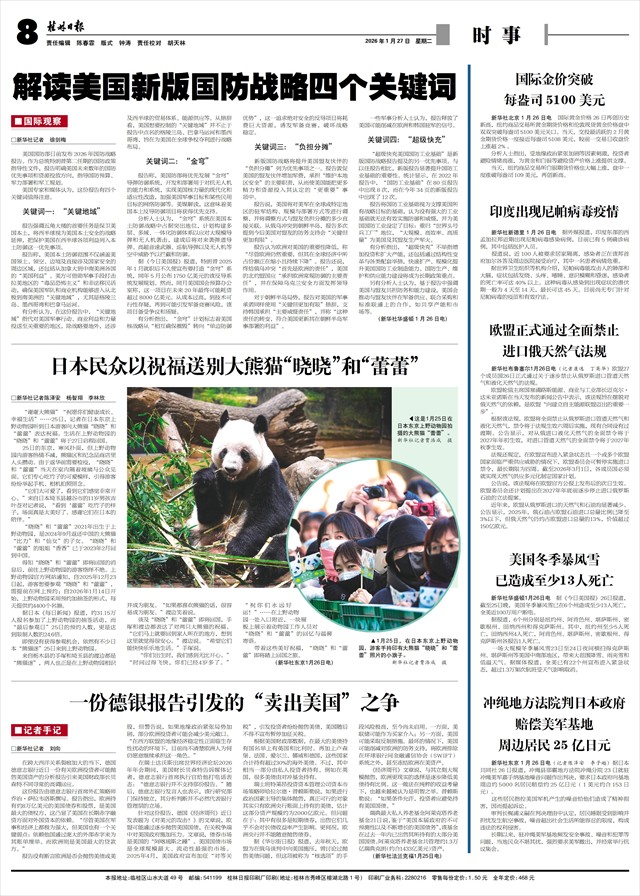 美国国防部日前发布2026年国防战略报告。作为总统特朗普第二任期的国防政策指导性文件,报告明确美国未来数年的国防优先事项和资源投放方向,指导国防预算、军力部署和军工规划。