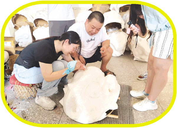 2025年8月,北京航空航天大学守源传志团队在朱远惠的指导下,体验恭城瑶狮制作技艺。(受访者供图)