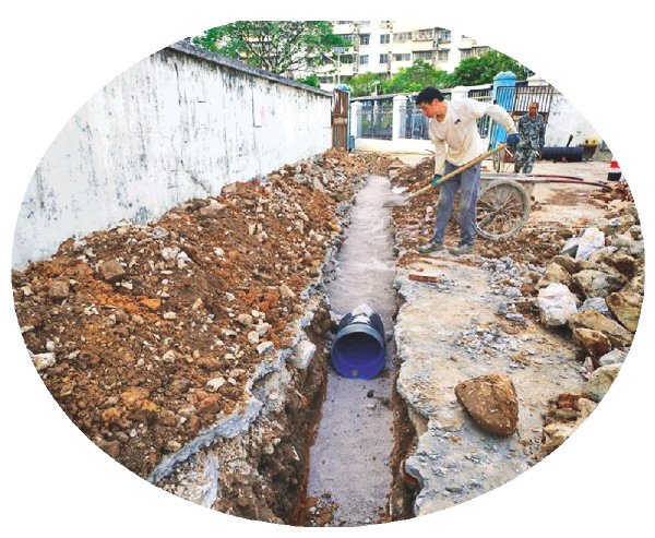 ▲金隆苑小区的排污管道在进行改造。
