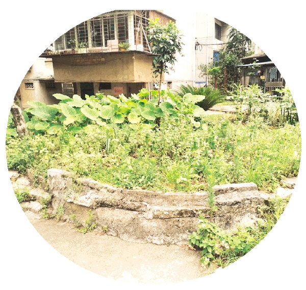 ◥西清路2、4、6号小区改造前,绿化带里杂草丛生。