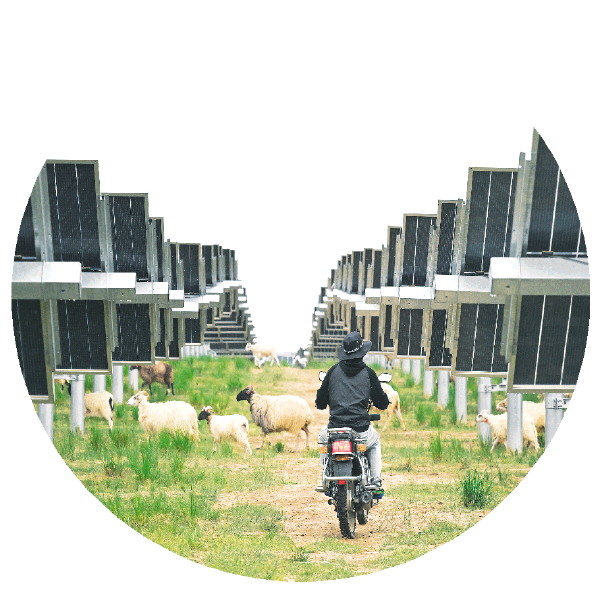 ▲2025年6月18日,牧民在位于青海省海南藏族自治州的青海黄河上游水电开发有限责任公司共和光伏产业园放羊。该光伏产业园推广“光伏+生态”模式,将昔日荒滩变成牧场。 新华社记者金良快 摄