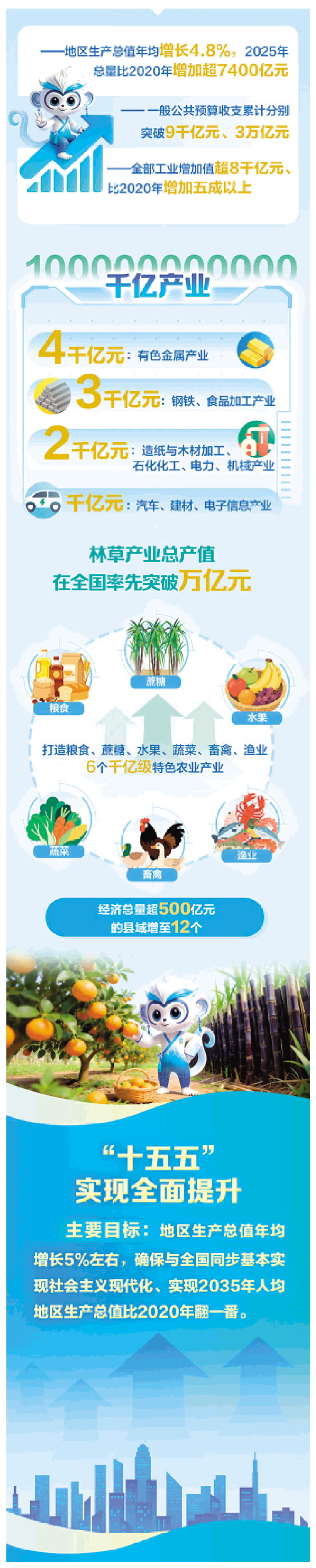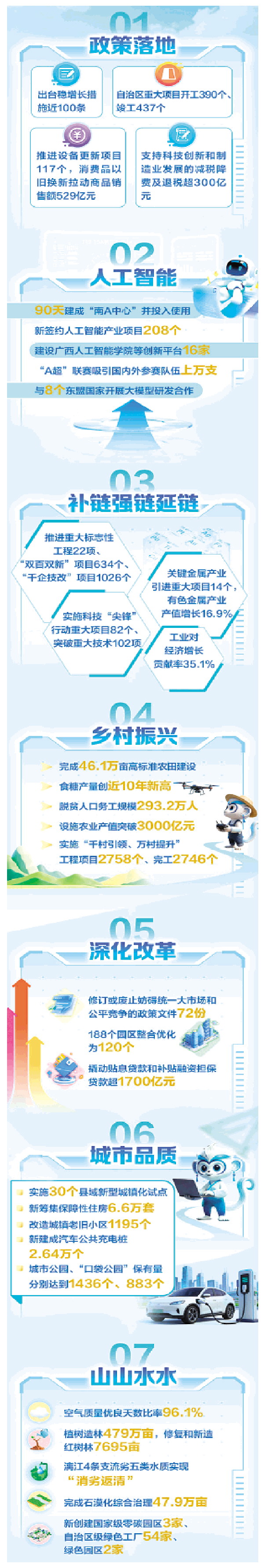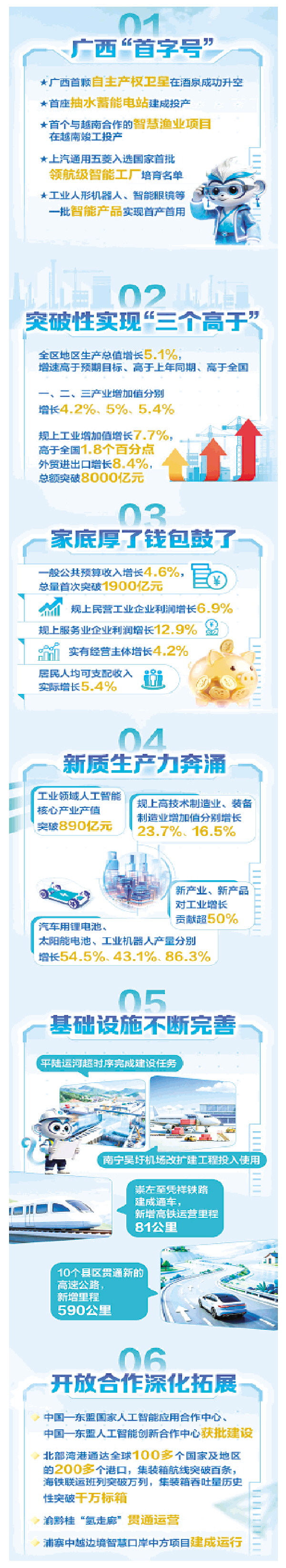 2025年,我区扎实推进“一区两地一园一通道”建设,推动经济运行回升向好、产业结构提质向优、市场预期改善向上、民生保障力度向强,高质量发展迈出坚实步伐,各方面工作气象一新、格局一新。