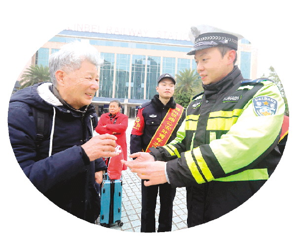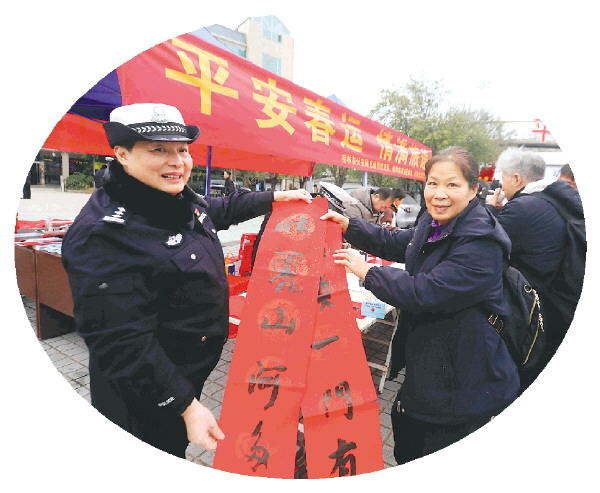 当天一早,“爱心驿站”的红帐篷下已热气腾腾,民警和志愿者们将一杯杯熬煮好的红糖姜茶递到旅客手中。此外,现场书写春联和“福”字的活动也吸引了不少旅客驻足。“平安行车万里路,文明交通一生福”“一路顺风需谨慎,千里归途莫超速”……一幅幅墨香四溢的春联,既是新春祝福,更是殷殷叮嘱。