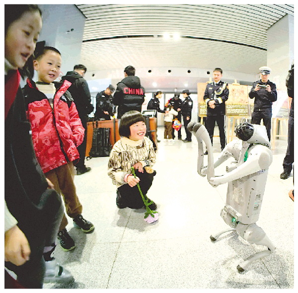 带着孩子出行的李女士说:“孩子一开始有点害怕,但看到机器狗做拜年动作后就笑了。这种形式很好,既展示了科技力量,又拉近了与旅客的距离。”