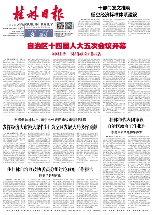 自治区政协常委、桂林市政协主席陈丽华说,自治区主席韦韬所作的政府工作报告,总结成绩客观全面,部署工作务实奋进,是一个高举旗帜、攻坚克难、凝心聚力的好报告,是一个讲政治、促发展、惠民生的好报告,是一个成效大、亮点多、作风实的好报告。桂林市政协系统将在政治方向上更加坚定,按照自治区党委、政府的部署要求,引导各党派团体和各族各界人士坚定不移跟党走、携手奋进新征程;在创新履职上更加有效,聚焦自治区、桂林市今年重点工作,特别是打造桂林世界级旅游城市、保护漓江保护桂林山水等工作,持续开展好各项委员专项行动和“双联双创”活动,加强视察调研,积极监督建言,协助党委、政府把好事办好、把实事办实;在凝聚共识上更加广泛,充分发挥统一战线凝聚人心、汇聚力量的政治作用,多做强信心、聚民心、暖人心、筑同心的工作,为助推科创广西先行试验区(桂林)建设、助力打造桂林世界级旅游城市、实现广西“十五五”良好开局贡献更多智慧和力量。