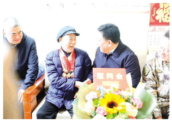 本报讯(记者陈静 文/摄)春节将至,年味渐浓。近日,桂林市退役军人事务局联合桂林警备区、爱心企业广西桂林桂广滑石开发有限公司,共同开展走访慰问活动,为四位平均年龄超百岁的功勋老兵代表送去冬日的温暖与诚挚的新春敬意。