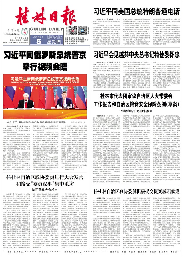 卢新华表示,报告饱含着对人民群众的深厚感情,彰显着法治广西建设的坚实步伐,是一个旗帜鲜明、凝心聚力,求真务实、彰显担当的好报告。自治区人大立足广西发展实际,围绕重点领域和关键环节精准发力,坚持以“小切口”破解“大难题”,体现了立法为民、法惠民生的价值追求;不断创新监督方式、增强监督实效,打出了一套精准有效的监督“组合拳”,有力推动了自治区党委决策部署落地。这次提交审议的《广西壮族自治区粮食安全保障条例(草案)》,全面贯彻习近平总书记关于国家粮食安全的重要论述精神,全面落实国家粮食安全战略,目标明确、原则清晰,顶层设计系统周密,实施路径切实可行,必将为筑牢我区粮食安全防线提供更加坚实有力的法治保障。桂林市政府将结合实际,认真落实好自治区人大常委会工作报告,积极践行全过程人民民主,推进桂林高质量发展不断取得新成效。