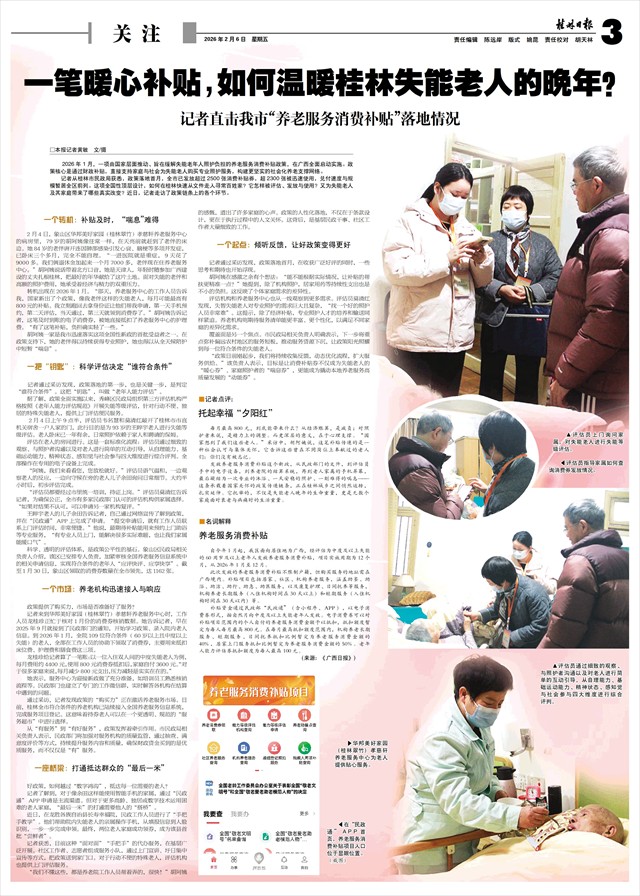 “政府工作报告中发展以AI为引领的新质生产力、培育千亿产业的宏伟蓝图等内容,为我们指明了方向。”自治区政协委员、灵川县医疗保障局局长盘旭说,她将把自治区两会精神带回岗位,以“守好民生底线,护好健康防线”为己任,聚焦医保服务提质、基金安全监管、AI赋能经办等重点,把会议擘画的蓝图转化为守护老百姓健康福祉的实际行动,以实干担当为新时代壮美广西建设添砖加瓦。