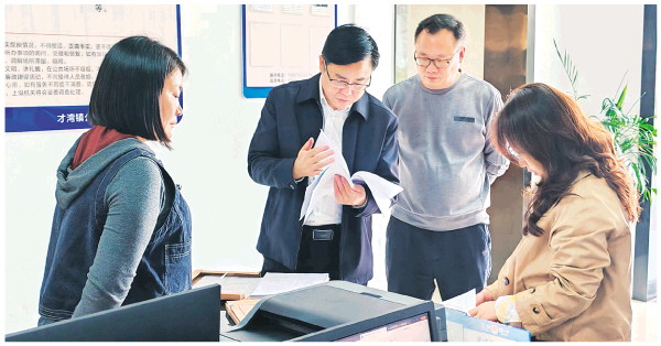 ▲桂林市司法局党组书记、局长韩觅(左二)到全州县才湾司法所调研。