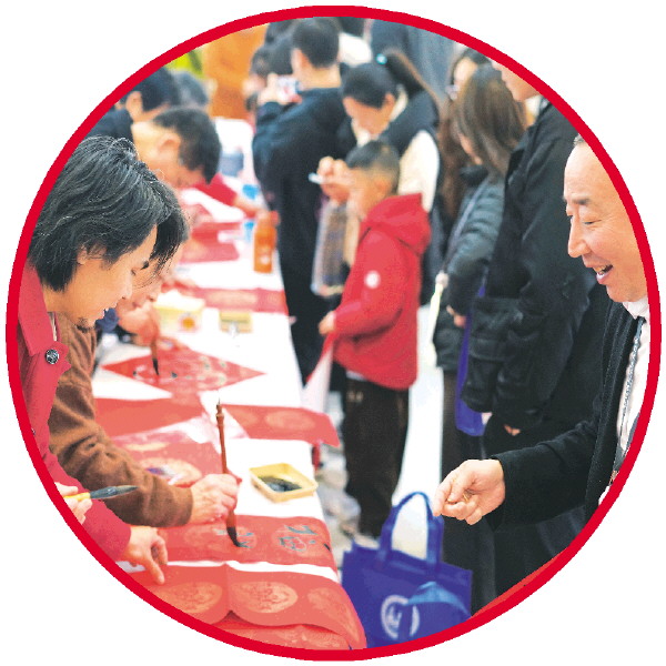 在公益送春联区,桂林企业界书画家协会的书法老师们挥毫泼墨,笔走龙蛇。一副副饱含祝福的春联、一个个形态各异的“福”字在他们笔下诞生,或遒劲有力,或清秀雅致。不同于市场上购买的印刷品,这里的春联可以“私人定制”。市民王先生特意请老师书写了心中选定的对联:“能免费拿到手写春联,还能按心意定制,感觉特别朴实美好。把这祝福贴上门,新年肯定红红火火。”不少家长带着孩子排队,在墨香中感受书法魅力,理解春联背后的文化内涵。