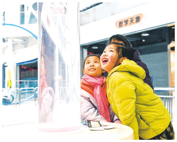 ▲2月6日,小朋友在江苏泰州科技馆体验科学实验装置。