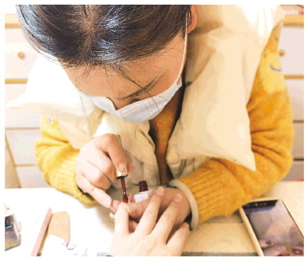 一位美甲师正在给顾客指尖“焕新”。 记者刘菁 摄