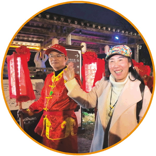游客参与走牌灯表演。 记者刘菁 摄
