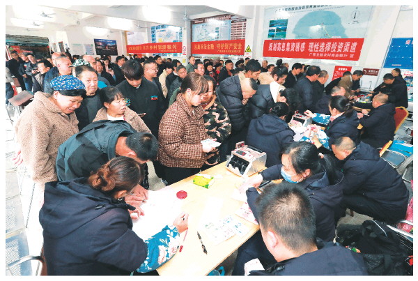 ▼村民排队领分红。