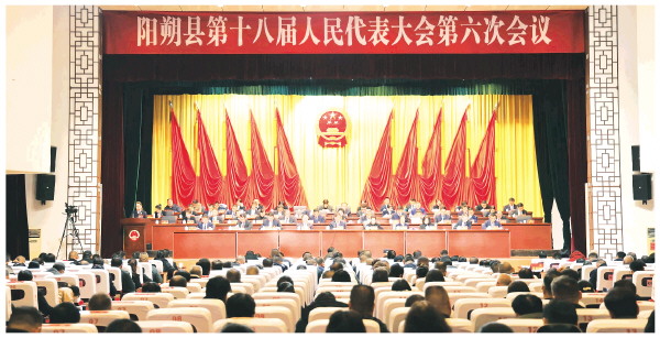阳朔县第十八届人民代表大会第六次会议现场。