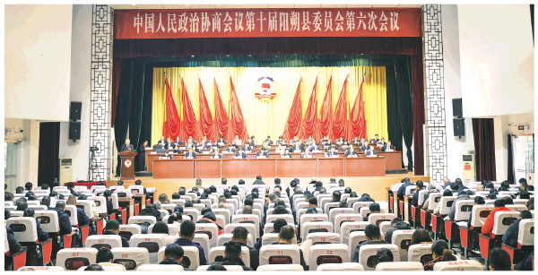 政协第十届阳朔县委员会第六次会议现场。