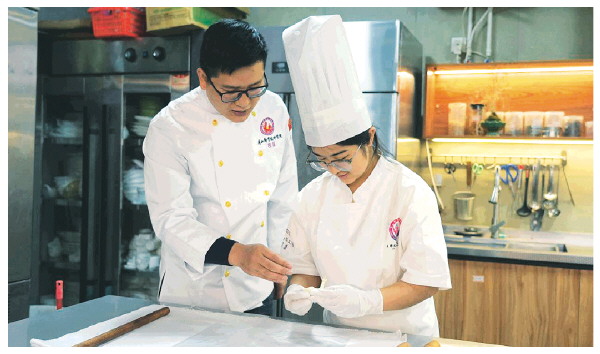 桂福正在指导学生制作点心。