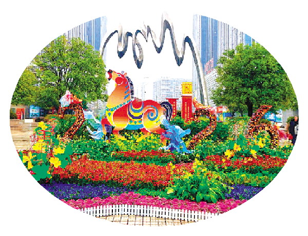 ▲桂林北火车站广场上的花坛布置。