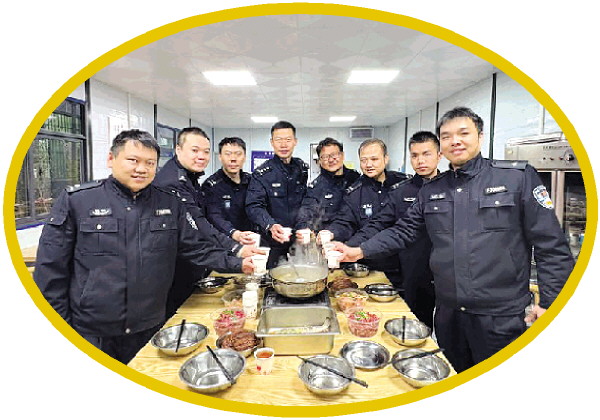 “今天所里一共16位民警及辅警在岗。”副所长周小星一边给大家盛汤,一边向记者介绍,“有的在所里守着,随时准备出警;有的在街面上巡逻,警车就是他们的‘年夜饭桌’。”