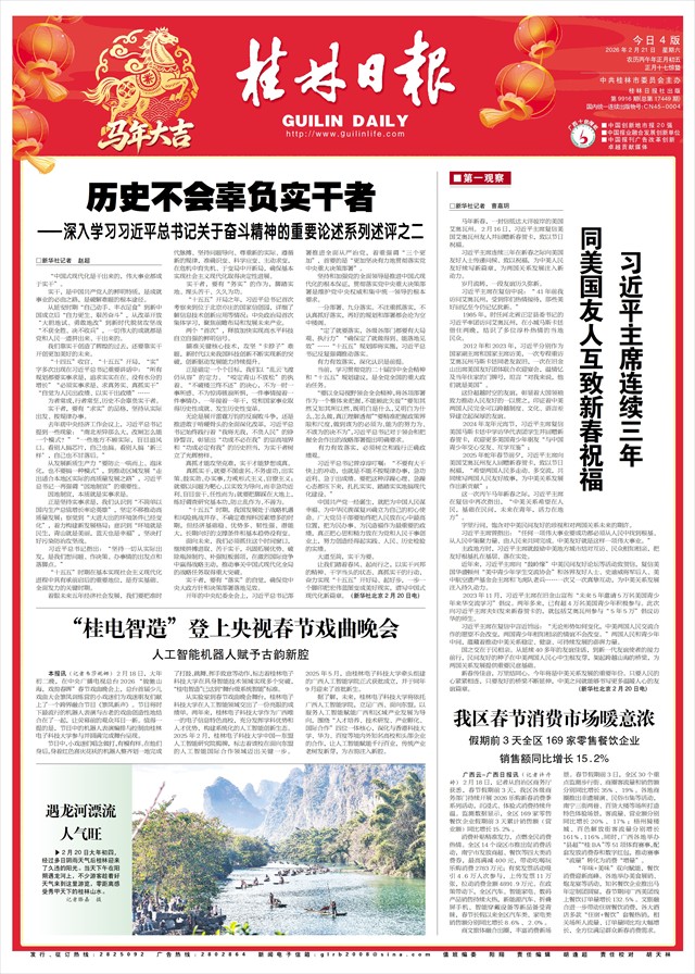 广西云-广西日报讯(记者许丹婷)2月18日,记者从自治区商务厅获悉,春节假期前3天,我区各级商务部门持续开展2026乐购新春消费季系列活动,沉浸式、体验式消费持续升温。监测数据显示,全区169家零售餐饮企业假期前3天累计销售额(营业额)同比增长15.2%。