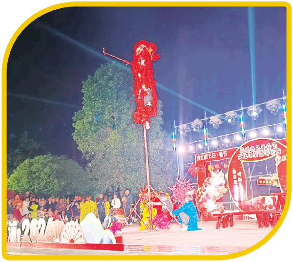 图④:大年初三,荔浦市举行“骏马迎春·明韵丰年”马年春节文化市集暨游园活动,民俗表演热闹非凡。图为精彩的舞狮表演。 周俊远 摄