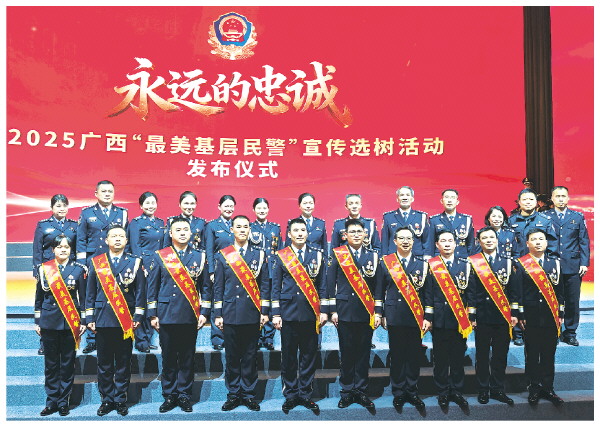 ◤此次获评的2025年广西“最美基层民警”现场合影。