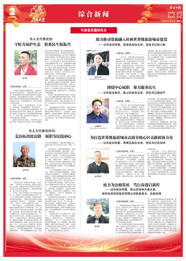 “既要守好遇龙河的绿水青山,也要护住沿岸群众的幸福生活。”桂林市第六届人大代表、阳朔县遇龙河景区旅游发展有限公司副总经理沈佳,始终将遇龙河生态保护、沿岸群众增收与桂林世界级旅游城市建设紧密相连,在秀美的山水间,书写着履职为民、助力乡村振兴的精彩答卷。