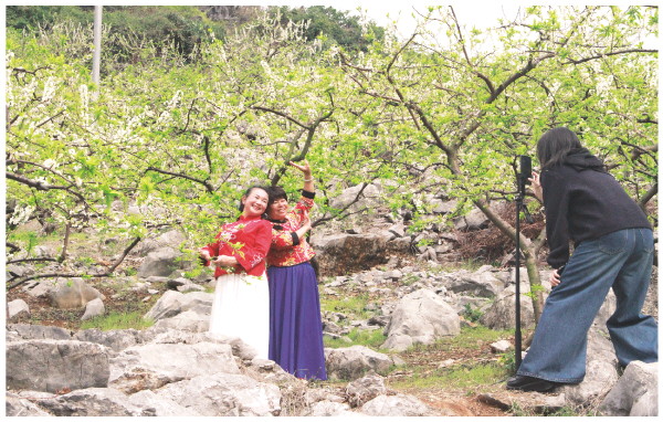 从大岭山头放眼望去,一簇簇、一团团李花缀满枝头,花瓣如云似雪,清新素雅。