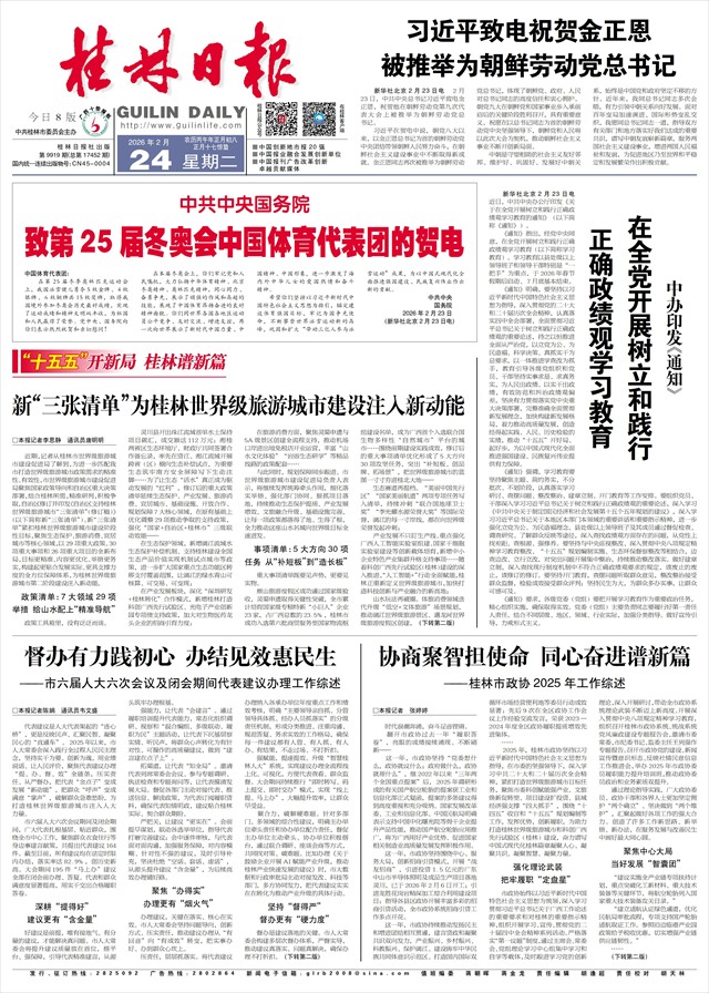 2025年,桂林市政协坚持以习近平新时代中国特色社会主义思想为指导,在市委的坚强领导下,深入学习中共二十大和二十届历次全会精神,紧扣打造世界级旅游城市目标任务,聚焦市委科创赋能强产业、文旅焕新促转型、项目建设扩投资、县域经济强支撑“四大抓手”,围绕“十四五”收官和“十五五”规划编制等工作,发挥优势,创新履职,为助力打造桂林世界级旅游城市和科创广西先行试验区(桂林)建设,奋力谱写中国式现代化桂林篇章凝聚人心、凝聚共识、凝聚智慧、凝聚力量。