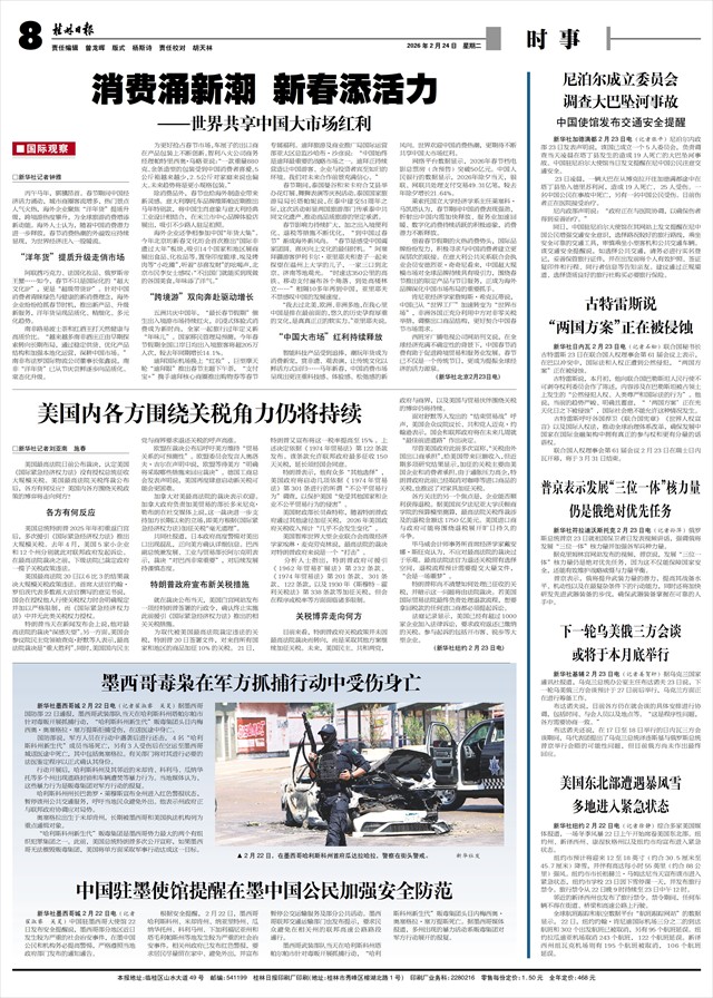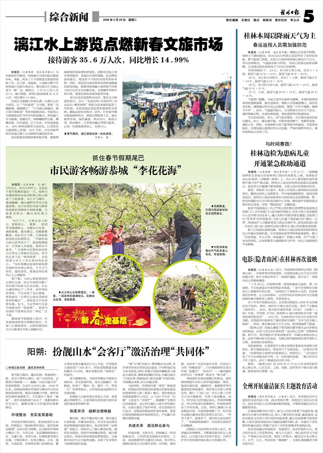 山水玩法再破圈。体旅消费领域迭代升级“低空+文体旅游”场景规划,推动漓江世界级旅游景区、遇龙河世界级旅游度假区创建,(下转第二版)