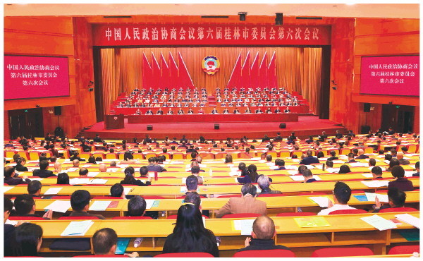 2月25日上午,市政协六届六次会议在桂林市会议中心大礼堂开幕。 记者李凯 摄