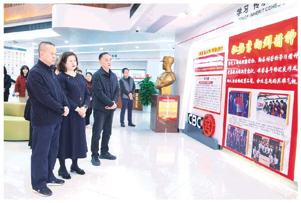 工行桂林分行行级领导陪同受邀代表参观李向群精神文化墙。