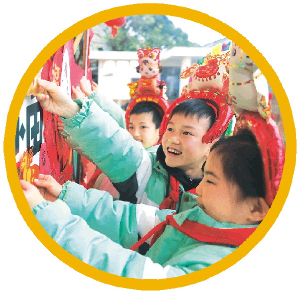 走进校园,仿佛步入了一个热闹的民俗庙会:孩子们在老师和家长的指导下,有模有样地包着饺子、搓着汤圆;书法区里,“小书法家”们蘸墨挥毫,一个个饱满的“福”字、一副副寓意吉祥的春联跃然纸上;剪纸摊前,巧手翻飞间,一幅幅精美的窗花逐渐成形;投壶和套圈区域更是排起了长龙,每当有同学精准命中,现场便会爆发出热烈的喝彩;最温馨的是“心愿墙”,孩子们认真写下新学期的愿望,小心翼翼地贴在展板上,眼里闪烁着对未来的憧憬。