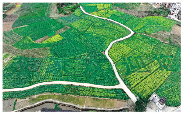 这片金色花海不仅风景迷人,还蕴含着土地增效的“密码”。近年来,张家镇立足农业资源禀赋,以“一河两游四区联动”为发展格局,大力推广“稻—稻—油”轮作模式,对冬季闲置农田进行集中治理与规模化利用。通过这一模式,3000余亩冬闲田实现“四季生金”,既稳定了全镇粮油种植面积,又有效提升了土地综合利用效益。在种植过程中,张家镇充分发挥党建引领作用,依托“主题党日活动”,组织党员干部深入田间地头,与群众并肩开展土地平整、播种育苗、疏苗管护等工作,为春华秋实打下了坚实基础。