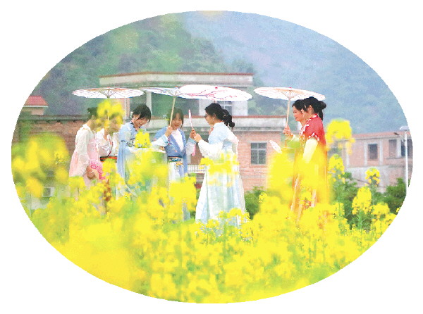 花海间,数十名身着汉服的年轻姑娘衣袂飘飘、穿梭其间,手执油纸伞、团扇回眸一笑,古韵与繁花相映成趣,与自然风景形成“人在画中游”的诗意画卷。“没想到在家门口就能拍到这么美的汉服大片,欢迎大家来玩。”来自该县的摄影爱好者李先生一边按动快门一边赞叹。