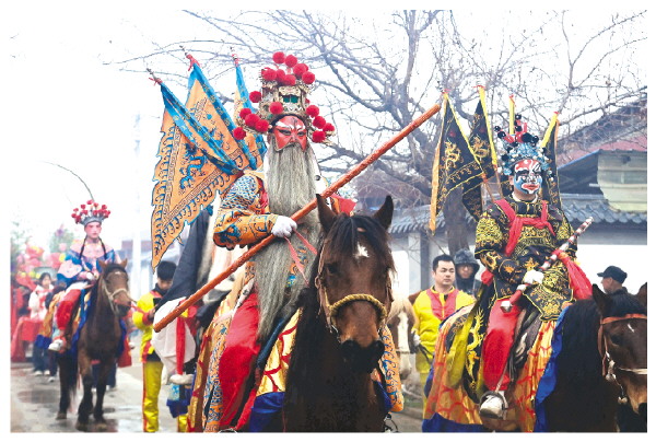 3月2日,农历正月十四,陇县黄花峪村社火队在游演途中。