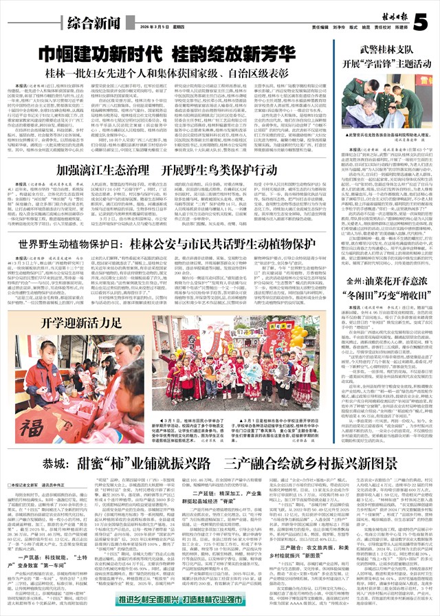 市政协提案委副主任韦敏玲说,全国政协十四届四次会议隆重开幕,这是锚定“十五五”良好开局、砥砺前行的盛会。常委会工作报告站位高远、总结全面、求真务实、催人奋进。去年10月以来,市政协提案委组成工作专班,围绕国之大者、民之关切的生态建设和绿色发展问题,深入调研,精心打磨形成关于漓江流域生态保护方面的提案,已经提交此次大会,积极争取国家层面的更大支持,以提案之力服务桂林发展大局。