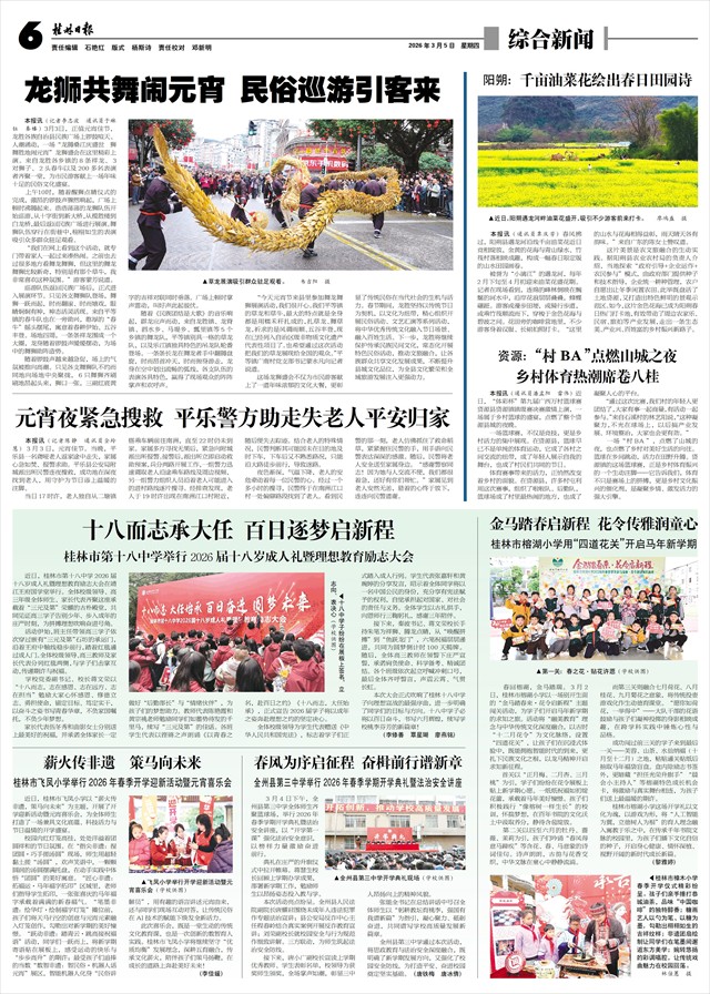 在广西省立艺术馆举行   本报讯(记者李思静)3月2日晚,由中共桂林市委员会宣传部、桂林市文化广电和旅游局主办,桂林市戏剧创作研究中心、桂林市非物质文化遗产保护传承中心承办的“华灯初上”2026年桂林市元宵戏曲晚会,在广西省立艺术馆上演。