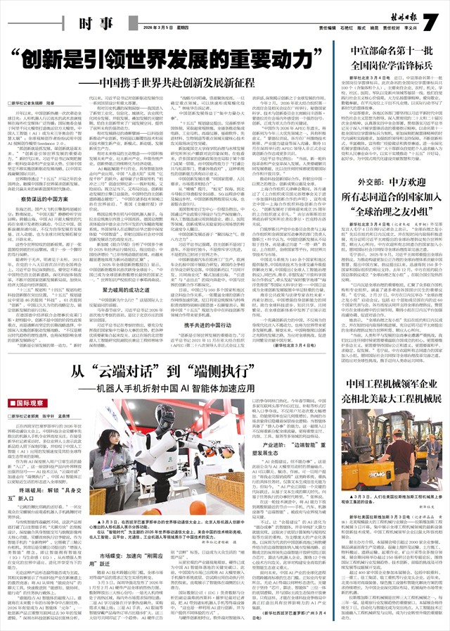 AI崛起赋能千行百业,具身智能加快走向产业应用,中国“人造太阳”实现“亿度千秒”的跃升,超导量子计算原型机“祖冲之三号”创造世界纪录……既补短板,又抢前沿;既立足当下,又布局长远。创新驱动发展的引擎日益强劲,中国特色自主创新道路越走越宽广。“中国在诸多技术领域已站在世界前沿。”英国《金融时报》评价说。