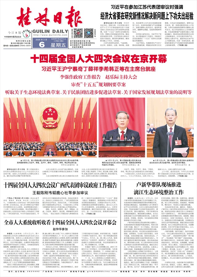 本报讯(记者陈娟)3月5日上午,第十四届全国人民代表大会第四次会议在北京人民大会堂隆重开幕。桂林市人大常委会机关干部职工、各级人大代表通过集中收看、自行收听等多种方式,关注开幕会盛况,认真聆听李强总理代表国务院所作的政府工作报告,共同感受国家发展脉搏,凝聚履职奋进力量。