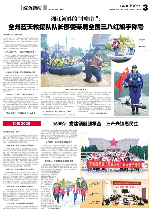 在红军长征湘江战役的发生地,在全州县这片红色热土上,廖雯带领着蓝天救援队,用一次次冲锋在前、向险而行的实际行动,诠释着新时代女性的勇敢与担当。