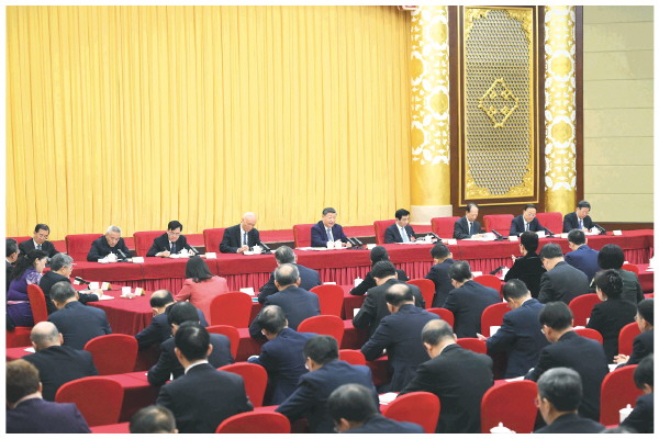 中共中央政治局常委、全国政协主席王沪宁,中共中央政治局常委、中央办公厅主任蔡奇参加看望和讨论。