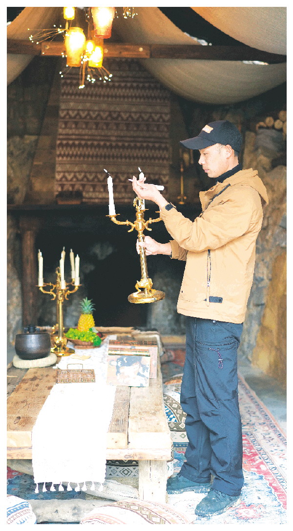 在已经对外开放的一个充满异域风情的包间里,记者看到,这里保留了斑驳的墙体,配上波西米亚风格的软装和温暖的壁炉,形成了强烈的视觉反差。“这里以前是村里烧砖的老窑,非常残旧,几乎成了废墟。”刘文侠指着这个独特的空间说,“我们觉得这种结构很有味道,就把它改造利用了起来,布置成了很有特色的打卡地。现在很多小型宴会和生日聚会都指定要订这一间。”