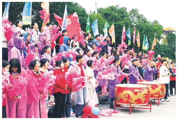 赛场上精彩纷呈,赛场下也充满了“春意”。比赛当日正值“三八”妇女节,许多球迷前来观赛,为各自支持的球队加油助威。赛事主办方十分贴心地准备了小礼物——球迷们手持一朵朵鲜花,在赛场下形成了一道美丽的粉色“花海”。“今天是妇女节,我和儿子特意到场来支持我们七星区队,我也可以一边看比赛一边过节,两全其美。”球迷张女士开心地说。