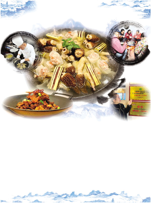 谈及制作诀窍,陈大厨向记者介绍,先将乳鸽、排骨用扒锅炖出浓醇汤底,再加入羊肚菌酿、柚皮酿与阳朔黑皮果蔗同煮。炖好的汤汁清甜可口,肉质弹牙多汁,羊肚菌酿与柚皮酿吸足了鲜醇汤汁,内里搭配本地冬笋的脆爽,口感层次丰富,满口留香。