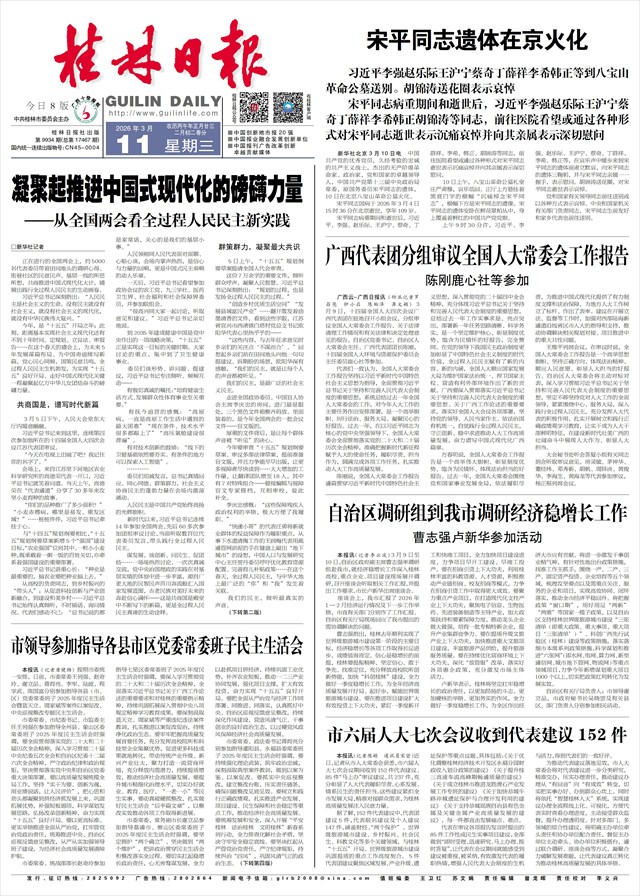 市六届人大七次会议收到代表建议152件   本报讯(记者陈娟 通讯员宋坚)近日,记者从市人大常委会获悉,市六届人大七次会议期间收到152件代表建议、85件“马上办”审议建议,共237件,充分彰显了人大代表履职尽责、心系发展、情系民生的责任担当。这些建议紧扣全市发展大局,精准对接群众需求,为桂林高质量发展注入民意力量。