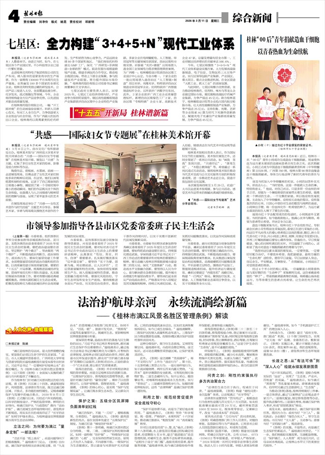 市委常委、常务副市长谢立品参加指导荔浦市、雁山区委常委班子2025年度民主生活会时强调,要坚定拥护“两个确立”、坚决做到“两个维护”,把讲政治贯穿民主生活会和整改落实全过程。要切实扛起稳增长政治责任,心无旁骛谋发展,全力以赴抓项目拼经济,持续巩固工业优势,补齐农业短板,推动一二三产业协同发展,强化项目支撑,扩大有效投资,奋力实现“十五五”良好开局。要把全面从严治党与经济工作同部署、同推进、同落实,认真抓好中央、自治区巡视反馈意见整改,持续深化作风建设,营造风清气正、干事创业的良好政治生态,以过硬党风政风保障经济社会高质量发展。