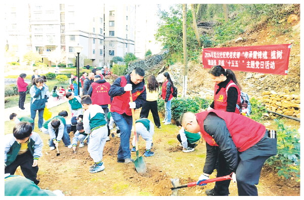 本报讯(记者周子琪 通讯员李远勤)为弘扬新时代雷锋精神,助力“十五五”生态文明建设,3月12日,临桂区松山社区联合临桂区税务局、临桂区烟草专卖局、桂林投资控股集团有限公司、广西彩生活中实物业桂林第一分公司及童星苗苗幼儿园的孩子们,共同开展了一场充满生机与温情的植树护绿志愿服务活动。